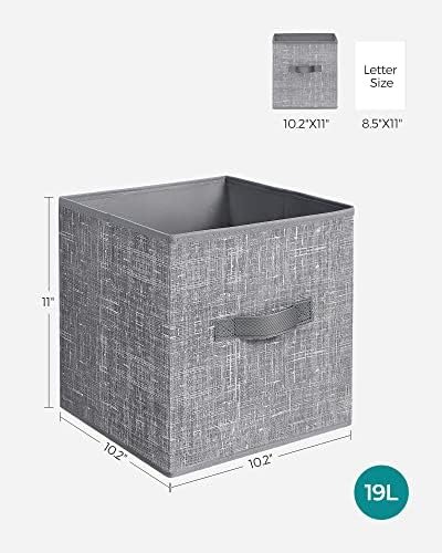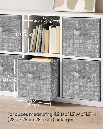 SONGMICS storage cubes transform cluttered spaces into organized sanctuaries with their sturdy 11-pound capacity and premium non-woven fabric construction. These versatile bins fold flat when not needed, fitting perfectly into standard cube organizers while maintaining their sophisticated cattail gray appearance. You get six durable organizers that handle everything from bedroom clothes to living room essentials without sagging or tearing.