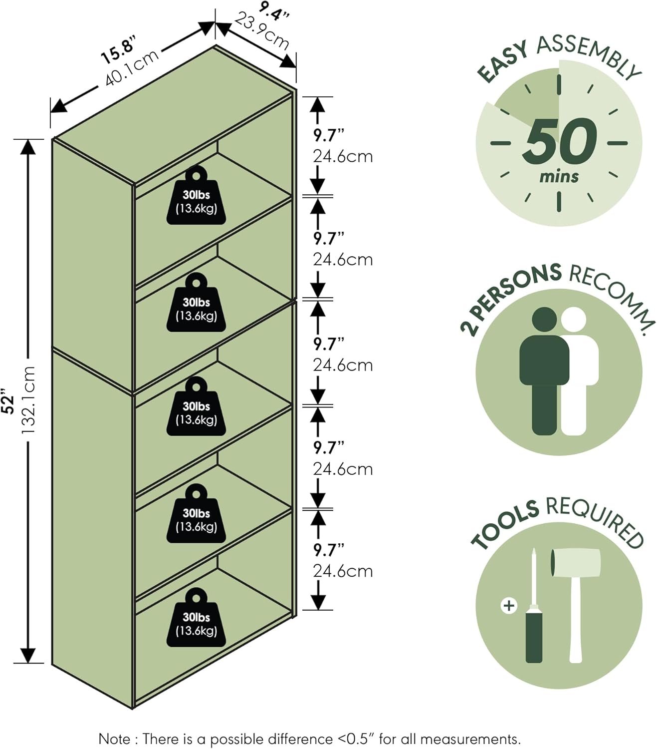- Sleek 5-tier vertical design: The open shelf bookcase stands at 52″ high, using a slim profile perfect for bedroom bookshelf needs or as a living room organizer.
