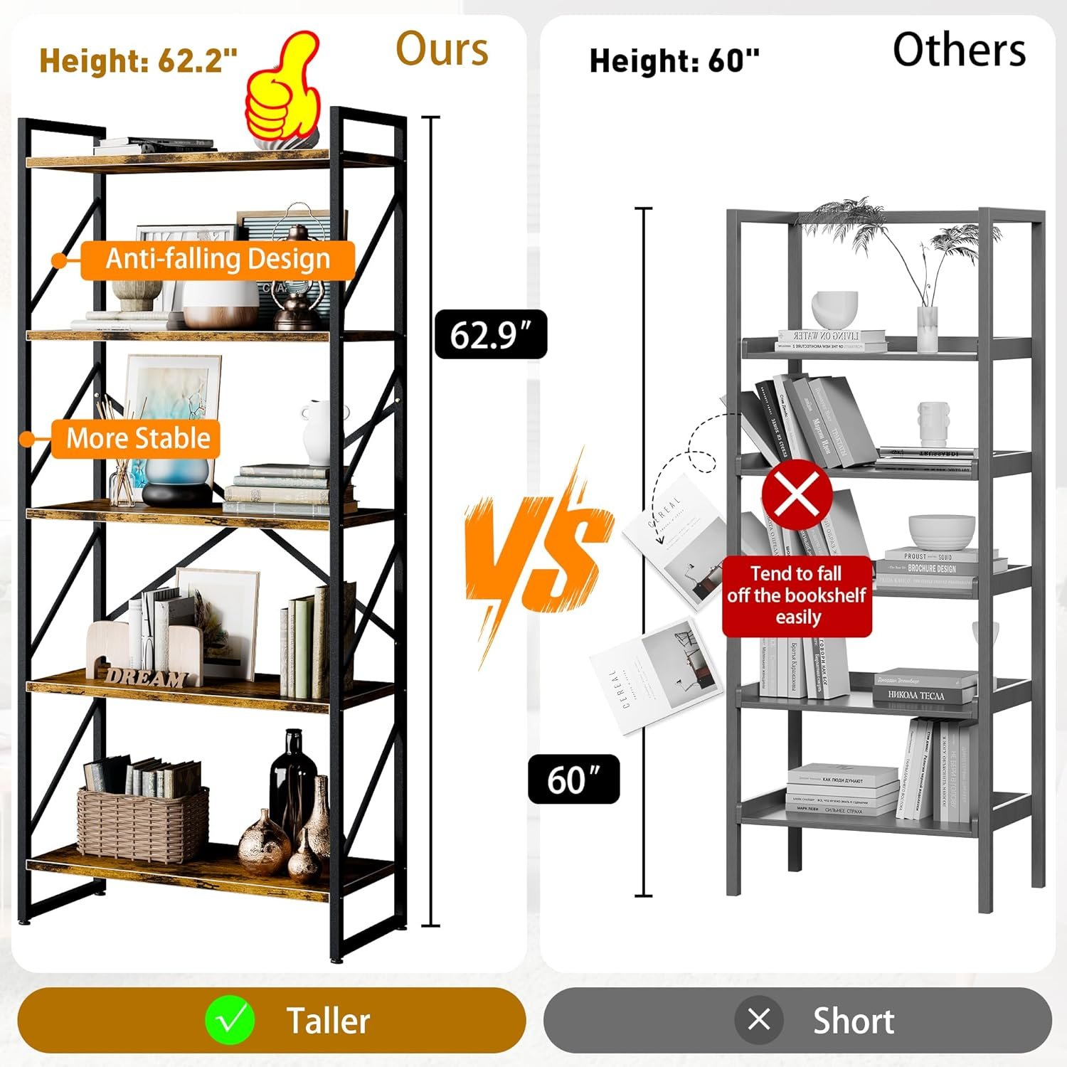 Upgrade your space with the Shintenchi 5 Tiers Bookshelf, a sturdy and stylish bookcase that blends industrial design and modern functionality. This classically tall storage rack features five spacious, easy-to-clean shelves made from FSC-certified wood and a durable metal frame, each tier supporting up to 40 lbs. Perfect for the living room, office, or bedroom, it offers generous storage without taking up much floor space. Assembly is quick and hassle-free, making this bookshelf from Shintenchi a practical and chic addition to any home.