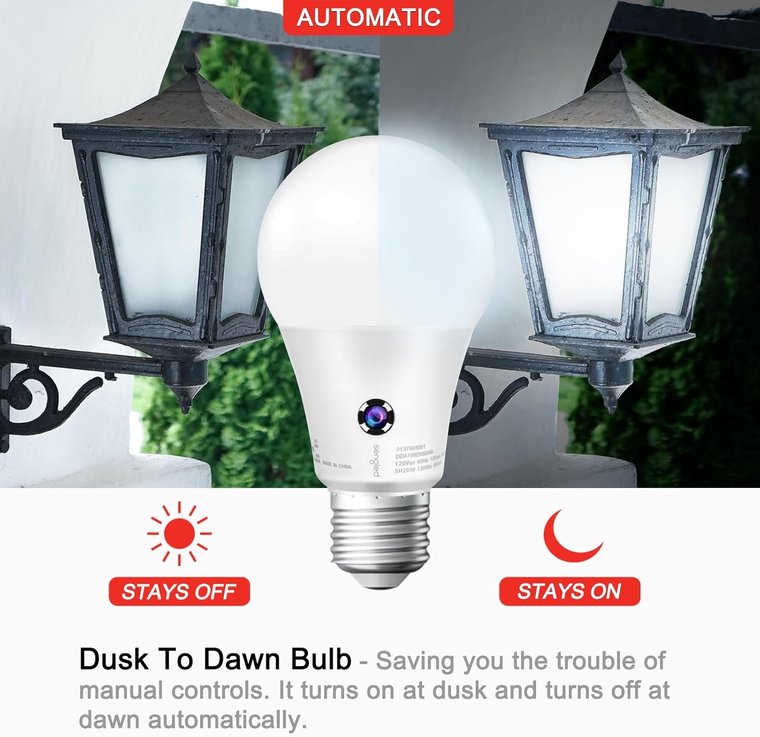 By using dusk bulb technology, you never waste power during daylight, automatically optimizing electricity use. Over its lifespan, the product saves you money compared to standard incandescent lamps.