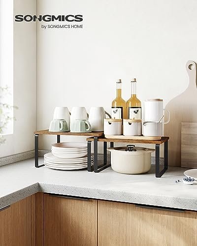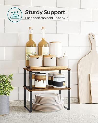 Compared to the Seville Classics Expandable Kitchen Shelf, the SONGMICS model wins on style and versatility. The Seville unit is purely functional with a utilitarian wire design, whereas this product blends form and function with its contemporary ink black and rustic brown color scheme. For additional cabinet storage solutions, see our under-sink storage guide for complementary products.