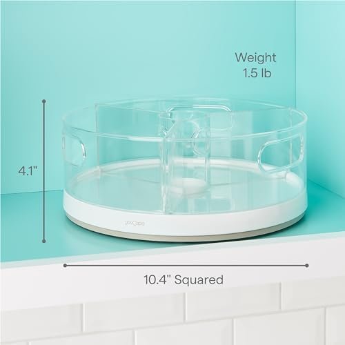YouCopia's Crazy Susan lazy susan transforms chaotic cabinet corners into organized storage you can actually see and reach. Three removable clear bins with handles rotate smoothly on ball bearings, bringing everything from the back to your fingertips with a simple spin. The non-slip base keeps it stable while you search, and setup takes just minutes. Your kitchen cabinets will finally work as hard as you do.
