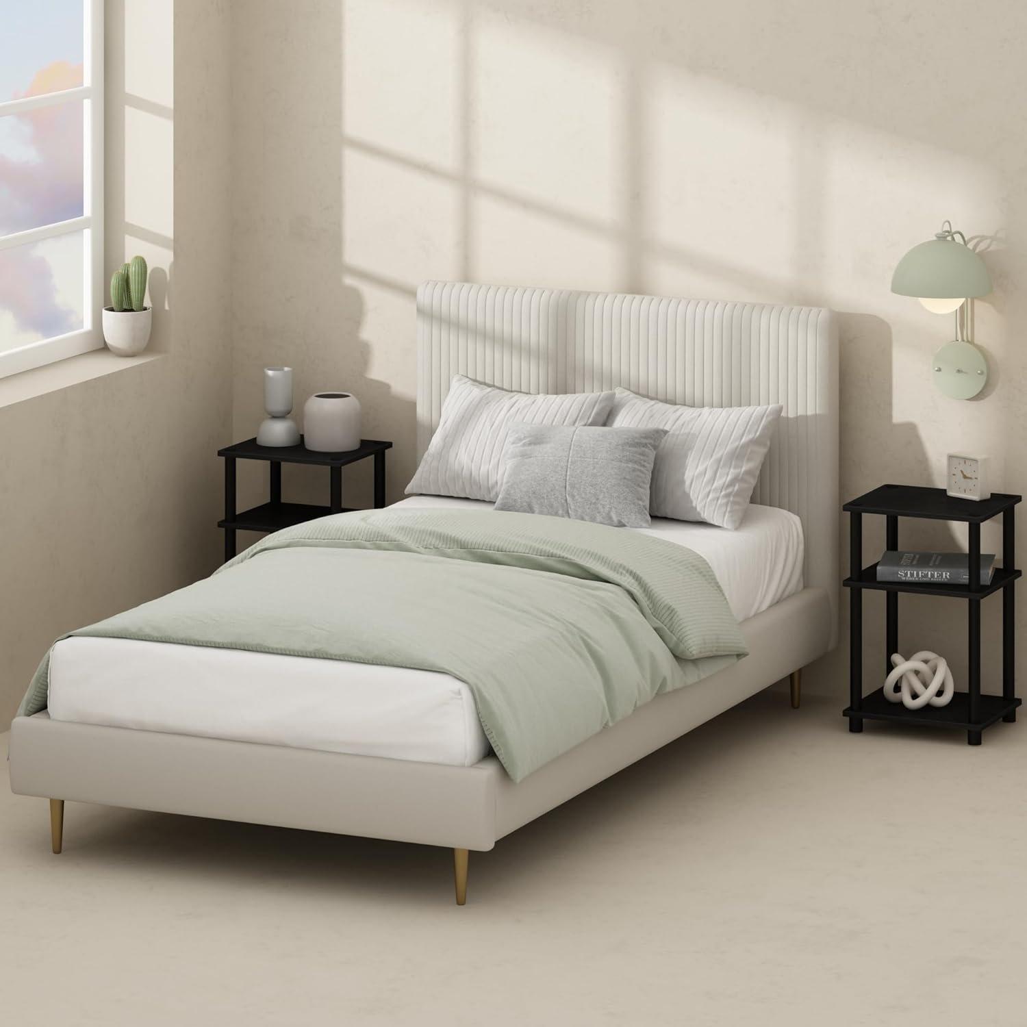 During a 6-week period, this unit held up to 60 lbs—matching its stated weight limit—without any warping or wobbles. The open shelf nightstand layout made it ideal for organizing books, a desk lamp, and various accessories. For reference, each tier comfortably fits up to three paperbacks or a standard-size basket for charging cables and remote controls.